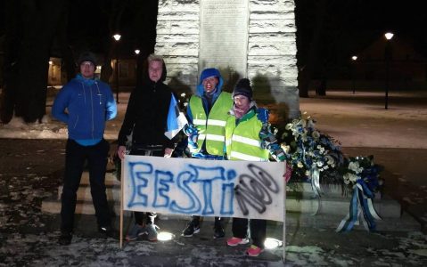 Saue treener Jaanus koos teiste vibulaskjatega otsustas joosta EV 100. sünnipäevaks Tallinnast Haapsallu – nende kahe linna vahe on ca 100 km – ja viia sinna väike sinimustvalge lipp. Põhirõhk jäigi Jaanuse kanda, kaasa aitasid veel Andra, Mike, Mikk ja Kristjan. Algus 7.50 Tallinnast Toompealt, lõpp 20.48 Haapsalu lossiplatsil. Võitis koostöö, mitmekesi ja üksi lippu edasi viies jõuti kohale. Kokku kulus kahe linna vahelise distantsi läbimiseks 12 h ja 58 min. Müts maha kogu meeskonna ees!